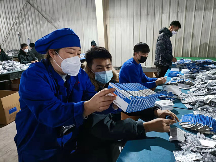 常務副總經理王顥介紹道:“受新冠疫情影響,生產任務較往年更加緊張,積累的訂單也較多,尤其是抗病毒、退燒類口服固體制劑產品訂單劇增。為此公司科學部署,一方面協調渤海分公司部分人員來支援固體車間,同時安排天成藥業、道恩藥業后勤管理人員分時段參與包盒;另一方面調整招聘策略,擴招一批臨時包盒工,緩解生產壓力。”