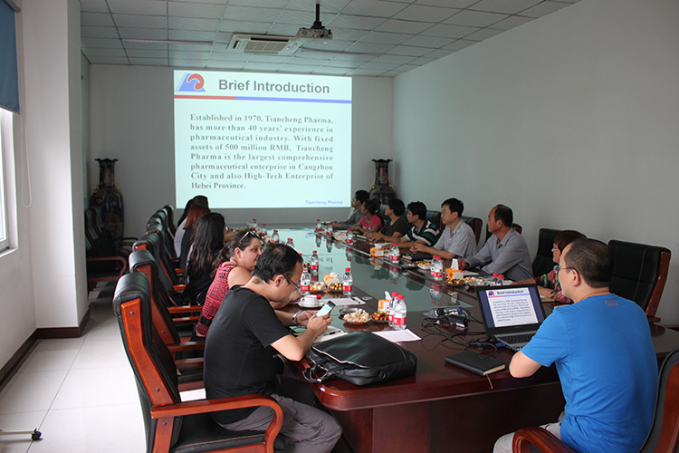 副總經理王顥,孫元清,總經理助理劉玉珍帶領外國專家團,先后參觀了公司大容量注射劑二車間塑瓶生產線,現代化立體倉庫。外國專家們就產品生產環節的技術關鍵點進行詳細的詢問與切磋。盡管語言表達習慣上的不同,但在雙方共同努力下,此次交流順利進行,達到滿意效果。