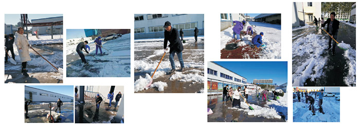 為了避免大雪對生產(chǎn)造成影響,車間主任吳俊川第一時(shí)間組織帶領(lǐng)我們掃雪。大家積極地投入到鏟雪行動(dòng)中。雖然雪積得比就厚,天氣比較冷,但這一點(diǎn)也沒有影響我們鏟雪的熱情和工作放率,作為一名員工,掃雪是貴任,更是義務(wù)。潔白的積雪映照著一張張因勞動(dòng)而泛紅的臉龐,大家樂在其中。不一會兒,輸液一車間有人出來了,儲運(yùn)部的人員也出來了,辦公樓上后勤人員也出來掃雪了,掃雪隊(duì)伍越來越大,一時(shí)間整個(gè)廠區(qū)主要干道和物流通道都是掃雪的人,形成了一道靚麗的風(fēng)景線。