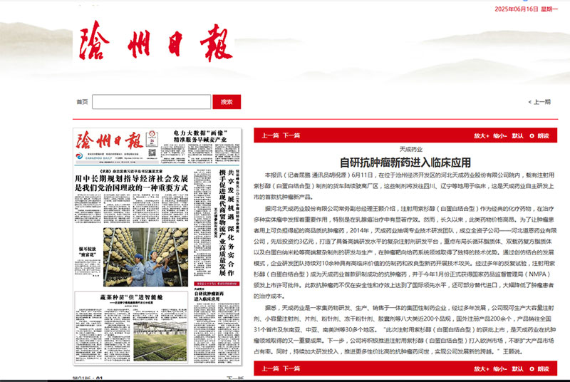 據悉,天成藥業是一家集藥物研發、生產、銷售于一體的集團性制藥企業,經過多年發展,公司現可生產大容量注射劑、小容量注射劑、片劑、粉針劑、凍干粉針劑、膠囊劑等八大類近200個品規,國外注冊產品200余個,產品銷往全國31個省市及東南亞、中亞、南美洲等30多個地區。“此次注射用紫杉醇(白蛋白結合型)的獲批上市,是天成藥業在抗腫瘤領域取得的又一重要成果。下一步,公司將積極推進注射用紫杉醇(白蛋白結合型)打入歐洲市場,不斷擴大產品市場占有率。同時,持續加大研發投入,推進更多性價比高的抗腫瘤藥問世,實現公司發展新的跨越。”王顥說。