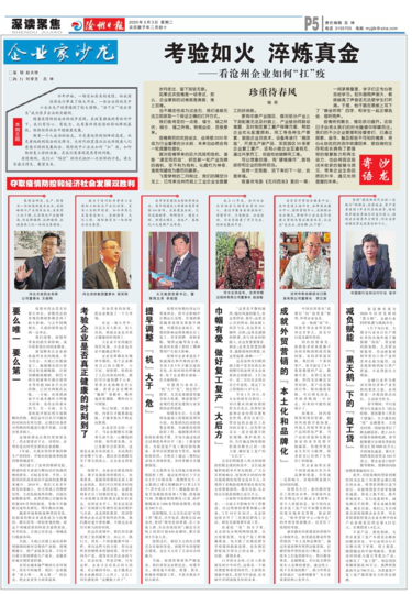 飛雪穿枝的二月剛過,我們的隔空沙龍上,已傳來滄州市規上工業企業全面復工的好消息。