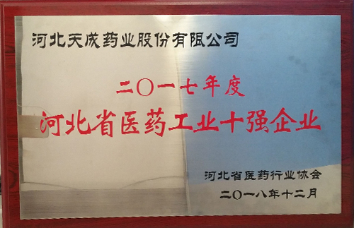 公司獲得2017年河北省醫(yī)藥工業(yè)十強(qiáng)企業(yè)