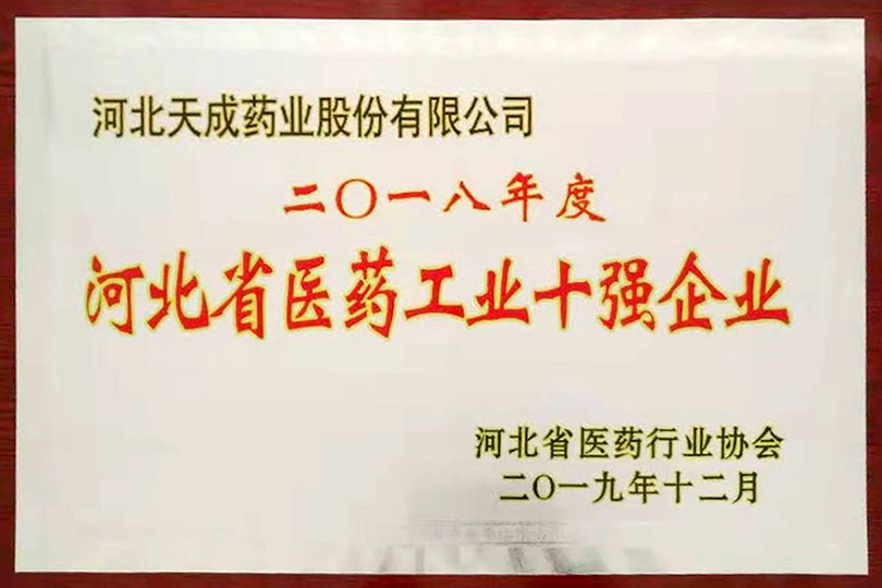 河北省醫(yī)藥工業(yè)十強(qiáng)企業(yè)